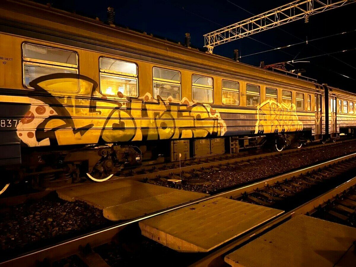В итоге электричку направили в малярный цех для устранения «последствий ночи», а личности неизвестных белорусских «художников» устанавливаются.
