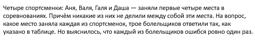 Пока у меня нет возможности записывать видео со сложными или даже просто с мудрёными решениями,но есть время на вот такие простые задачи. Они смогут вас отвлечь от рутины и переключить мозг на не сложный анализ. Здесь надеюсь всё понятно. Ответы болельщиков я сразу собрал в таблицу, так будет удобней, надеюсь.