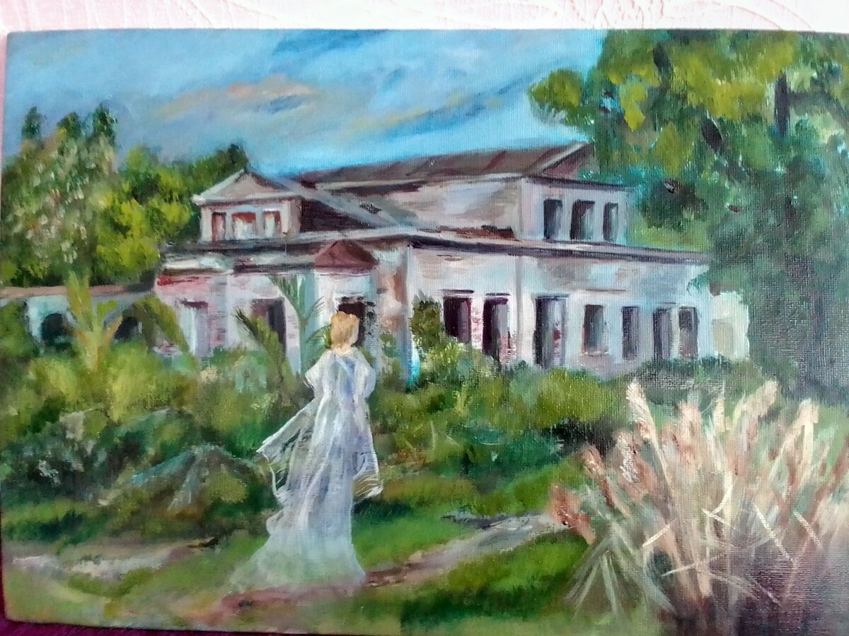 Инна – художница, у нее попросили картину на выставку. Ничего подходящего не было. Перед этим была другая выставка, и тогда картину Инны продали первой. Группу художников вывезли на пленэр, они рисовали развалины усадьбы. У всех на полотнах – одно и то же здание. Инне стало скучно. Она пририсовала призрака. Полупрозрачную даму в белом, которая идет к своему бывшему дому по дорожке.