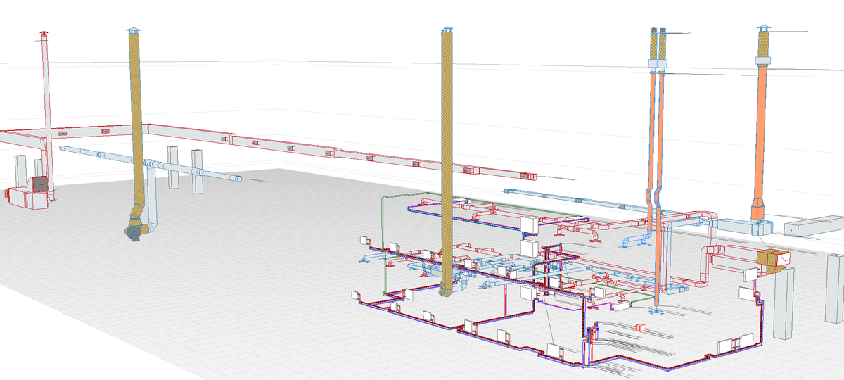 Смета на раздел ОВ Когда немного разобрался, как составлять сметы по ЦИМ, пропадают такие чувства как новизна, удивление, интерес. Остается одна рутина, но в тоже время приходит понимание, что в составлении смет по ЦИМ есть много преимуществ. Почему? Попробую ответить на этот вопрос, описав осмечивание вентиляционных систем. Перед составлением сметы, провели анализ раздела ОВ в проекте. Увидели, что всем элементам систем не хватает толщины и материала. Видимо это связано с тем, что эти параметры настраиваются и скрываются в стилях воздуховодов и фасонины, а не в самих элементах. Вывели формулой из стилей марку материалов для воздуховодов, толщину стенок воздуховодов, уточнили данные по конструктивным элементам системы вентиляции. Сначала решили поробовать осмечивать с 3д сцены. Сначала решили попробовать осмечивать с 3D сцены. Порядок действий точно такой же, как и раньше: выделяешь элементы, в плагине ищешь подходящую расценку, выбираешь свойство, на которое назначать (в случае венти