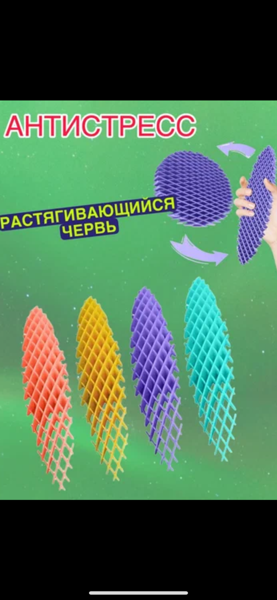 На этой неделе поступила новинка и серии игрушек антистрессов. Многие дети ещё не знают про неё но уже начали покупать да и цена её недорогая всего 200 р. в розницу. Антистрессы всегда популярны взять хотя бы предыдущие спиннер и попит которые были сверхпопулярными. Антистресс червь, Fidget worm - это игрушки-антистрессы в форме эластичной сетки, которая можно сжиматься и деформироваться. Они имеют привлекательные яркие цвета и их основная функция - помогать в снятии стресса и напряжения, предоставляя тактильное удовольствие и занятное времяпрепровождение. Популярны как среди детей, так и взрослых, и используются в качестве инструмента для облегчения тревожности или развлечения.