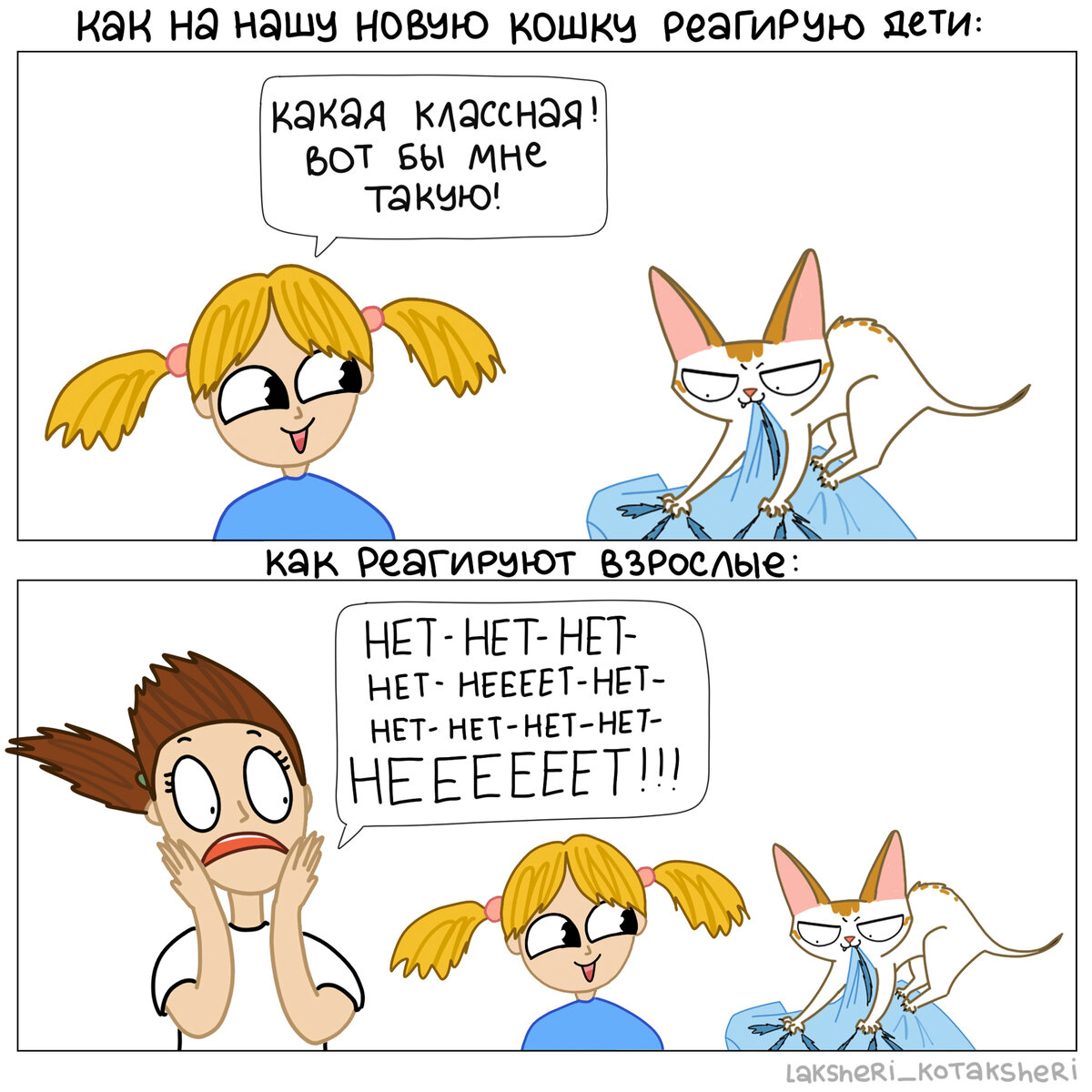 Мои подписчики делятся на два типа: одни фанатеют от нашей Козявки и хотят себе такую же кошку, а другие — фанатеют от Козявки, но она снится им в страшных снах🤣 Скажу честно, коту Артурчику, который с ней живёт, она тоже снится в страшных снах🤣 Потому что, если кошки себе на уме, то Козявка — себе на уме в кубе! И понимаешь, какое же счастье — иметь кошку, которая дрыхнет 24 на 7)) Но вот Козявочка не верит, что она шалунья, говорит, что Ангелочек она🤣 А вы бы хотели себе кошку-хулиганку? Или вам больше по душе спокойная кошка?