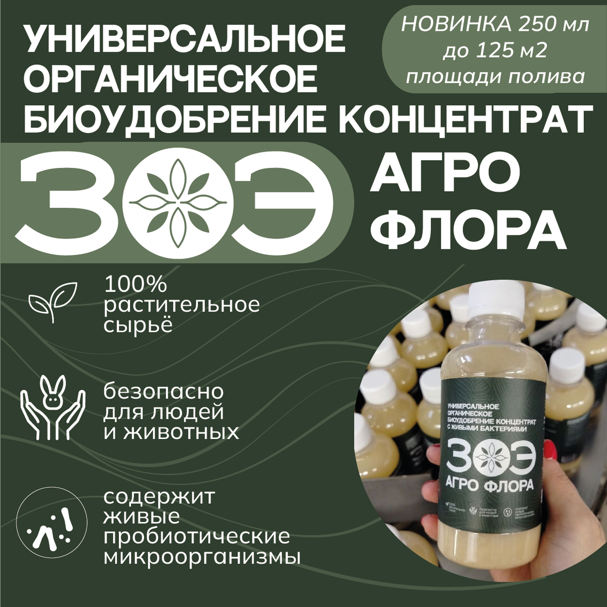 Универсальное органическое биоудобрение концентрат ЗОЭ Агро Флора с живыми полезными микроорганизмами в наличии на OZON в новом объеме 250 мл с улучшенными характеристиками! ❗ 1 баночки ЗОЭ Агро Флора 250 мл хватает для обработки до 125 квадратных метров земли. Пролонгированный эффект даже от однократного применения ❗ ЗОЭ АГРО ФЛОРА – уникальное органическое удобрение суперконцентрат, которое содержит в своем составе минералы, ферменты, микроорганизмы и питательную среду, незаменимую для здорового роста растений и образования питательной экосистемы почвы.
