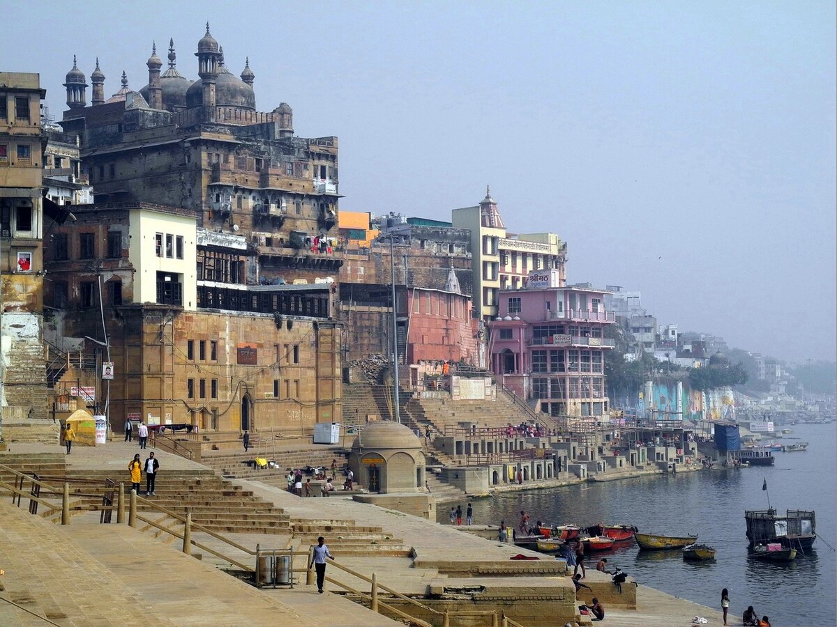 Помомо гхатов по всей набережной возвышаются красивые особняки, похожие на крепости. Часть из них превращены в гостиницы, в каких-то живут местные и на красивых фасадах сушится цветное белье. Между высоченными зданиями устроены узкие улочки, по которым поднимаешься по лестнице вверх и снова попадаешь на многочисленные "Гали".
