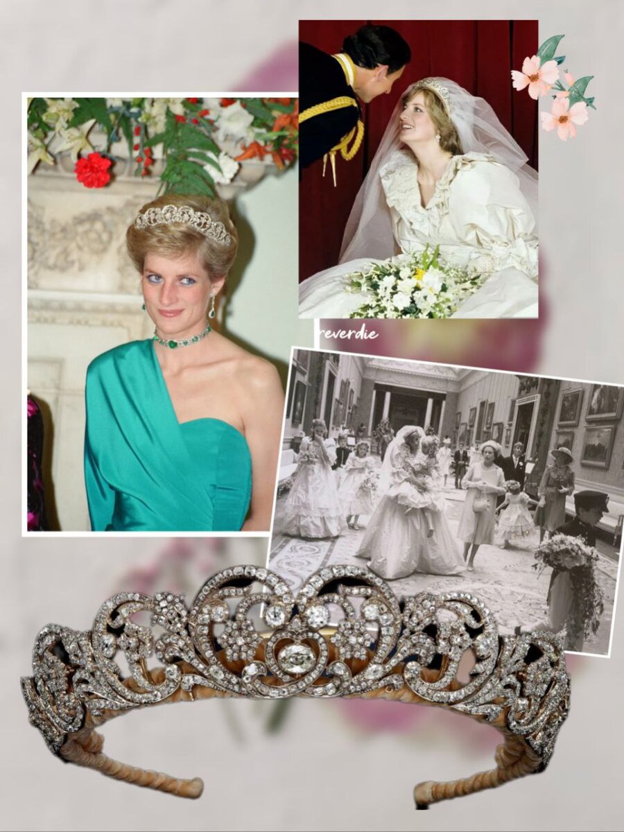 Когда Диана Спенсер выходила замуж за принца Чарльза, прямого наследника трона, как будущая королева-консорт она могла и должна была получить любое украшение из хранилища Виндзоров, но по каким-то причинам предпочла воспользоваться редким правом носить фамильную тиару.