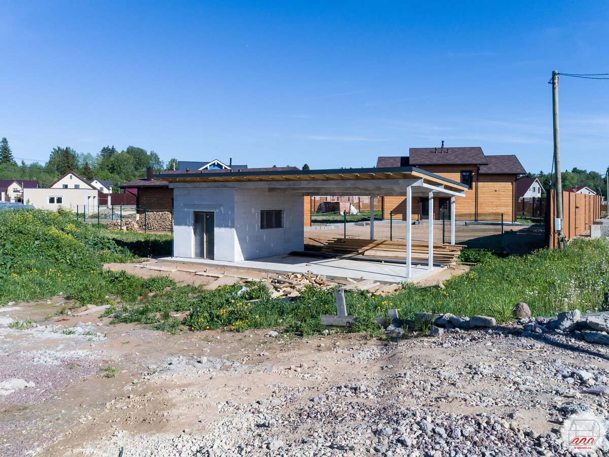 Хоз.блок 15 м2 с навесом на 2 машины, общие габариты 6,5*11 м. Здание 3,5*5,5 из газобетона 250 мм + навес 6*7,5 м с односкатной крышей
