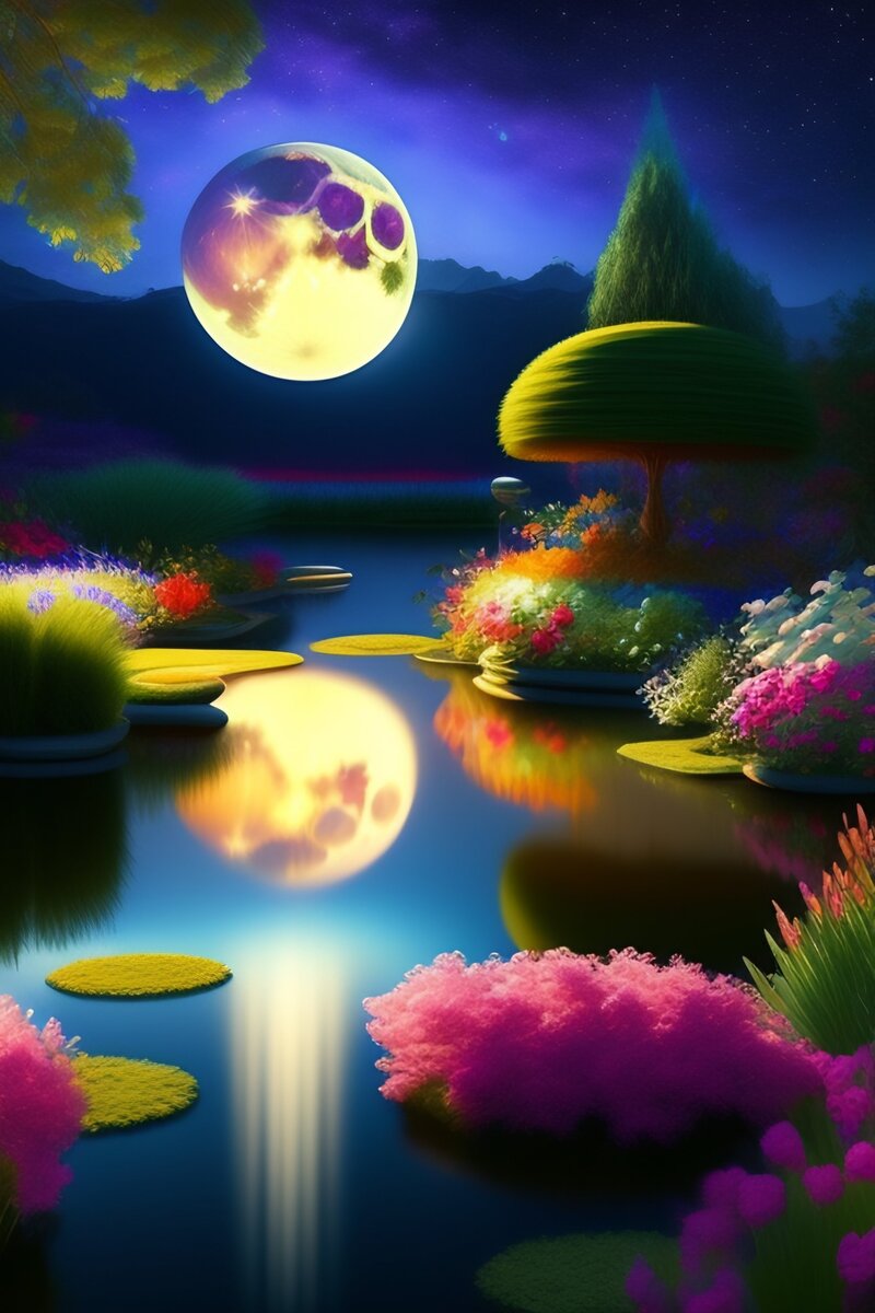 Меж тем сгустились сумерки. Лесная тропинка стала неразличимой. Валенсиэль шла наугад. Наконец она вышла на широкую, залитую серебристым светом поляну. Снова стало светло, почти как днем. Но иначе, волшебнее. Над поляной стояла огромная, зловеще-красноватая, прекрасная и чарующая полная луна. Облака вкруг нее сияли перламутром. Поляну окружали величественные сосны. Лунный свет окрасил их стволы волшебной синевой. Над голубовато-серебристыми травами стелился туман. В зарослях фиалок мелькали огоньки светляков. Неведомо откуда лилась завораживающая сладостно-печальная музыка. Неожиданно для себя Валенсиэль попала на лунный бал. Стройными рядами, взявшись за руки, торжественно проходили пары. Вот они закружились, легкие, грациозные, воздушные. Вдруг от круга танцующих отделились двое и направились к Валенсиэли. Это были высокие, стройные, державшиеся гордо и величаво юноша и дева. Оба имели бледно-лунные лица, большие, мудрые фиолетовые глаза и иссиня-черные локоны до плеч. На деве было ч