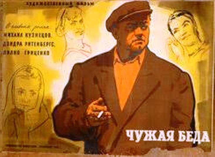 Чужая беда. СССР, 1961. Режиссер Ян Фрид. Сценарист Григорий Бакланов. Актеры: Михаил Кузнецов, Дзидра Ритенберга, Лилия Гриценко, Виктор Хохряков и др. 24,7 млн. зрителей за первый год демонстрации.