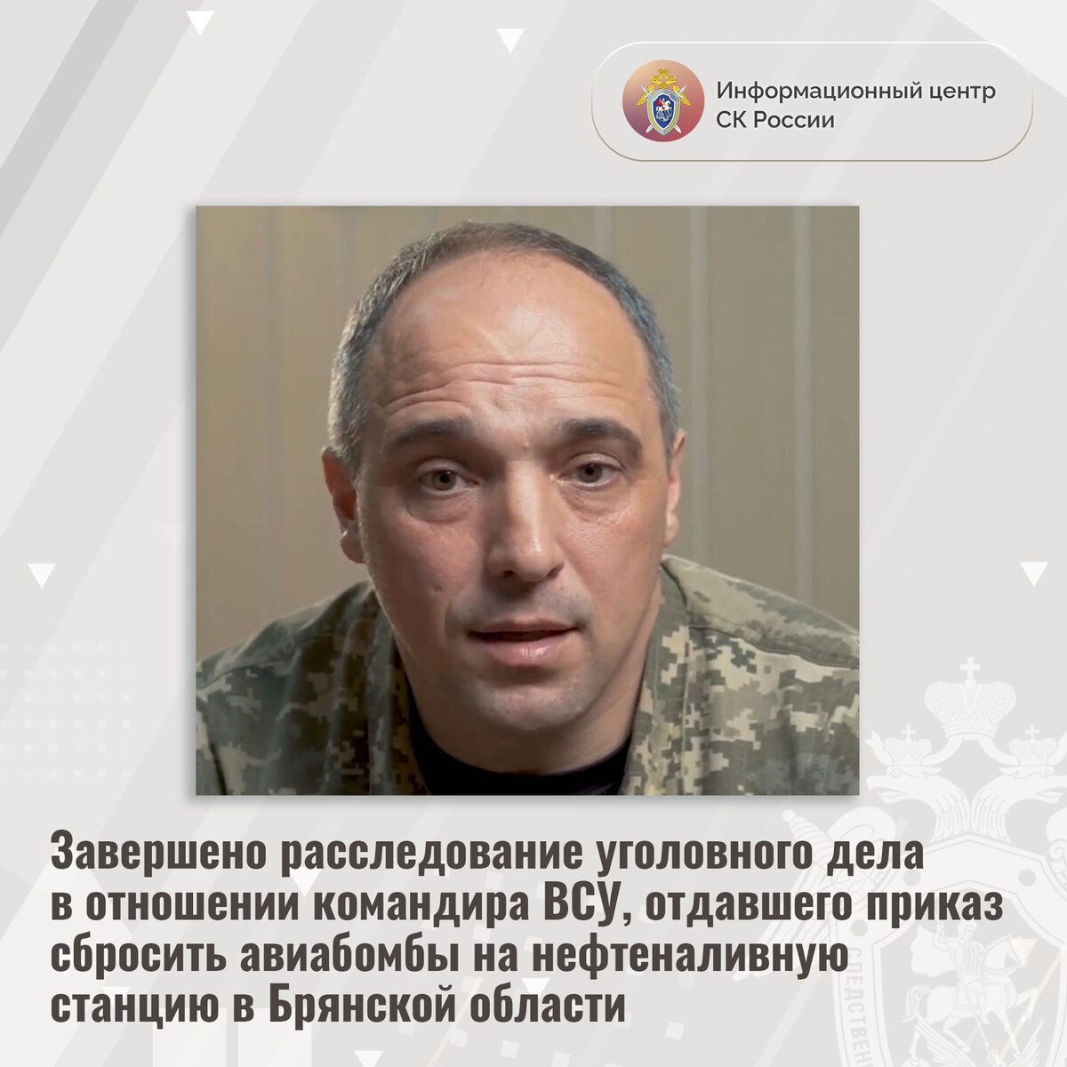 Завершено расследование уголовного дела в отношении командира ВСУ, отдавшего приказ сбросить авиабомбы на нефтеналивную станцию в Брянской области