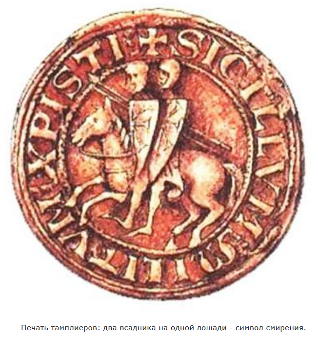 И сначала был настолько беден, что по два всадника "приходилось" на одного коня. Кроме того, основными их обетами тогда и были как раз бедность, целомудрие и послушание, а целью – защита паломников.