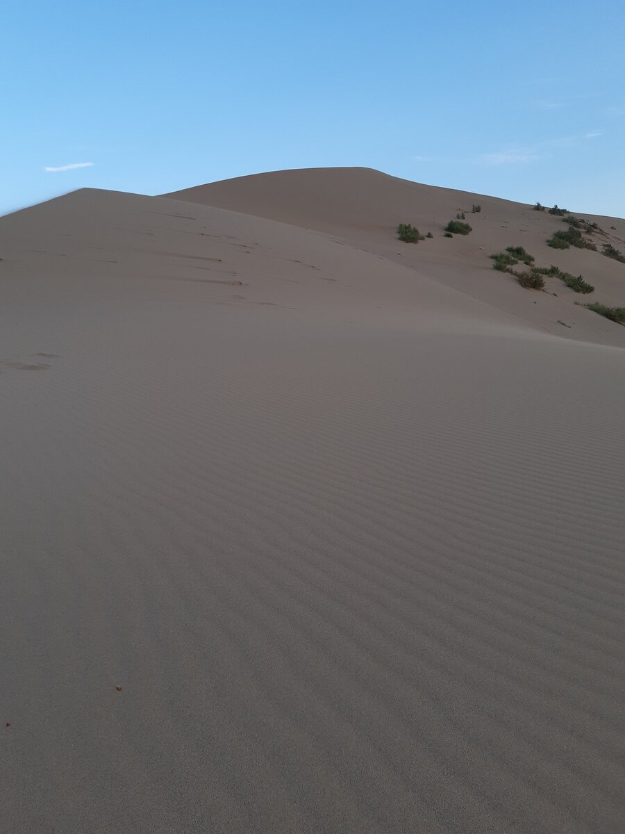Пел бархан тоже по-особенному. Сначала мы думали, что пение – это просто когда песок летит и тихонько шелестит. Но – нет, настоящая песня – это такой гул, глухой, утробный, кажется, что он идёт изнутри бархана. Очень впечатляет.