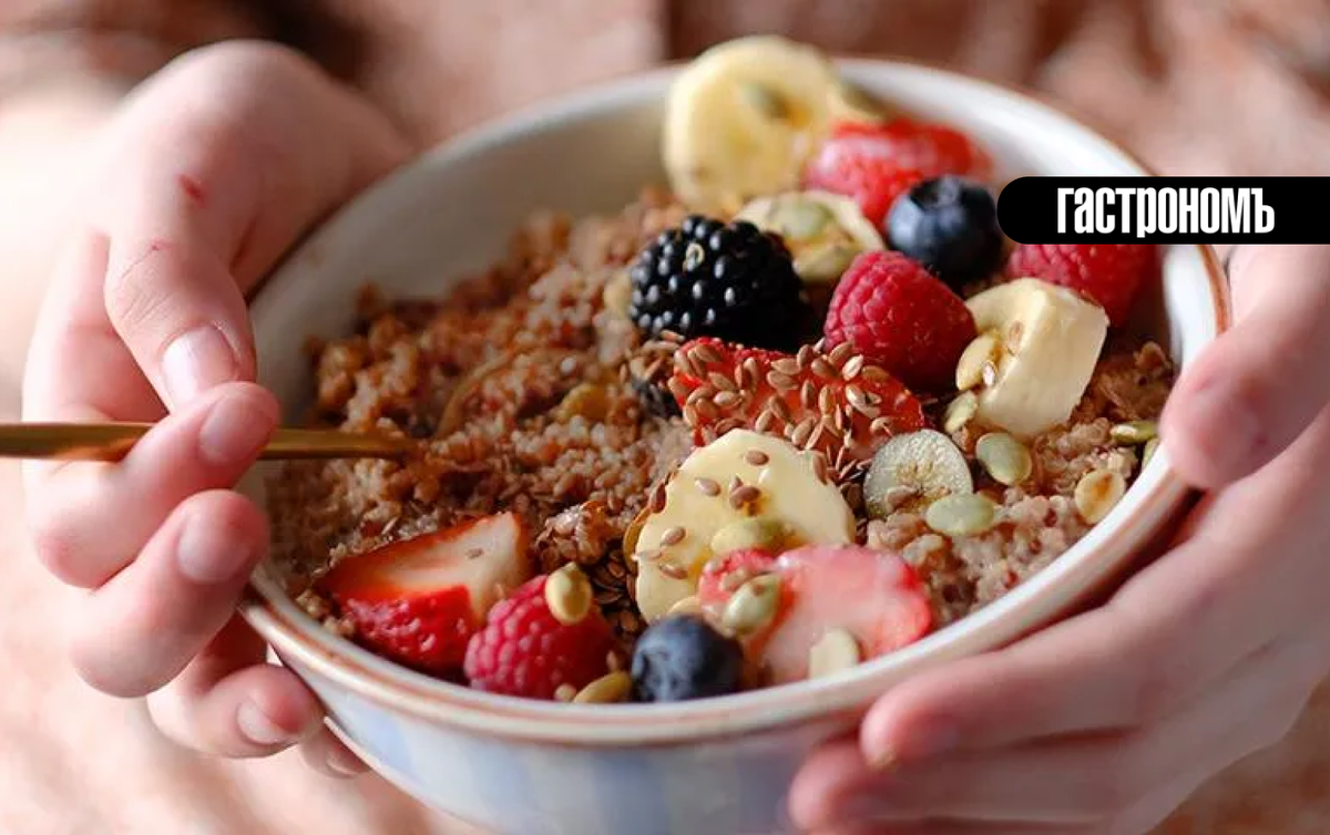Для киноа с миндальным молоком и ягодами мы выбрали самые полезные ингредиенты. Получился суперпитательный и модный завтрак или ланч для вегетарианцев, постящихся и всех любителей каш. Если вы не любите миндаль, можете взять другое молочко – кунжутное, овсяное, рисовое, гречневое, из фундука и их миксы. Уверены, что особенно полюбят такую кашку дети, ведь она немножко шоколадная (благодаря какао-порошку), а подается с ягодным ассорти и кусочками банана – вкуснота, да и только! Кстати, наполнитель в виде фруктов можно варьировать, какао заменить растопленным шоколадом и готовить хоть каждый день по-новому – никогда не надоест. Сложность: легко Калории: 248.60 ккал/порция Порций: 4 Готовка: 35 мин Б/Ж/У: 6.84 г/13.26 г/23.89 ИНГРЕДИЕНТЫ НА 4 ПОРЦИИ 75 г киноа 120 мл миндального молока 120 мл кокосового молока 20 г меда 5 г какао-порошка соль Для подачи: 200 г ягод половина банана 25 г обжаренных тыквенных семечек 10 г льняных семечек РЕЦЕПТ ПРИГОТОВЛЕНИЯ Шаг 1 Тщательно промойте киноа по