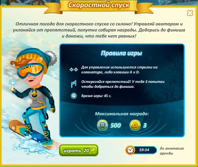 В мини-игру «Скоростной спуск» можно поиграть в горнолыжном курорте. Раньше здесь были обыкновенные гонки на сноубордах, как на серфах на пляже или на машинах в каньоне. Но на новогоднюю акцию к 2024 году механику игры поменяли, и теперь она стала одиночной (без соперника). В качестве награды за заезд можно получить серебряные и золотые монетки. Я провела эксперимент и узнала, сколько серебра и золота можно заработать в этой мини-игре за один час. Итак, вот что нужно знать, чтобы начать играть в мини-игру: На самом деле, приноровиться к игре можно довольно легко и быстро. Поначалу у меня не всегда получалось проходить до конца, но позже я и сама не заметила, как стала собирать по 300+ серебра и 2-3 золота за заезд. А сам процесс игры стал настолько легким, что у меня стало получаться нажимать на кнопки на автомате. Попробуйте, и вы заметите, что это довольно легкий способ подкопить серебра и золота! Однако следует помнить, что человек – не машина, поэтому это означает, что за час очень