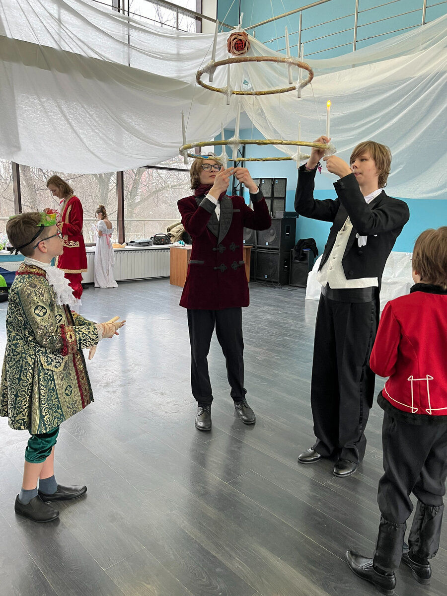 А вот и одна из причин по которой я пропала ненадолго из реальности. ТЮМ (Театр Юного Москвича) устраивал закрытый весенний бал для артистов и студийцев. Идея бала пришла совершенно случайно педагогу хореографу Нине Владимировне и понеслось. Сначала определились с эпохой, потом с программой бала, а позже и со всем остальным. За неделю до бала мы начали украшать зал под чутким руководством Нины Владимировны и все сами, без помощи родителей. Все что можно было увидеть на балу готовили сами ученики (и я не исключение). В назначенный день мы приехали заранее, а именно в 12 часов хотя начало бала планировалось в 16:00, и продолжили подготовку. Из подручных материалов были сооружены диваны, подготовлены канделябры и электрические свечи (все соответствовало пожарной безопасности). Еще полтора часа репетиции, и последний волнительный час перед балом потраченный на костюмы и грим. И вот настал тот самый момент когда надо заходить в зал. Ты подходишь к дверям, шепчешь на ухо церемониймейстеру с