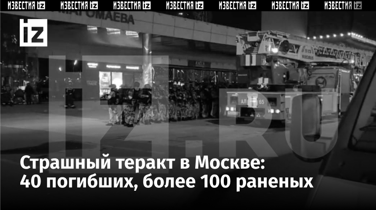 По предварительным данным, в результате теракта в комплексе «Крокус Сити Холл» 40 человек погибли и более 100 пострадали. Об этом 22 марта сообщили в ЦОС ФСБ России. В ведомстве отметили, что предпринимаются все возможные меры для оперативной помощи пострадавшим. Спецслужбы проводят оперативно-розыскные действия. Очевидцы сообщили о стрельбе в «Крокус Сити Холле» в Красногорске вечером 22 марта. Там должен был пройти концерт группы «Пикник». Причины происшествия и личность стрелявшего пока уточняются. По информации очевидцев, не менее трех мужчин вошли в зал и открыли огонь. Позже сообщалось, что в здании начался пожар. Как сообщили «Известиям» в правоохранительных органах, сотрудники специальных отрядов быстрого реагирования (СОБР) и мобильные отряды особого назначения (ОМОН) в Москве подняты по тревоге. Генпрокуратура РФ сообщила, что в «Крокус Сити Холл» ворвались неизвестные в камуфляже и устроили стрельбу. В МИД РФ назвали произошедшее кровавым терактом и призвали мировую обществ