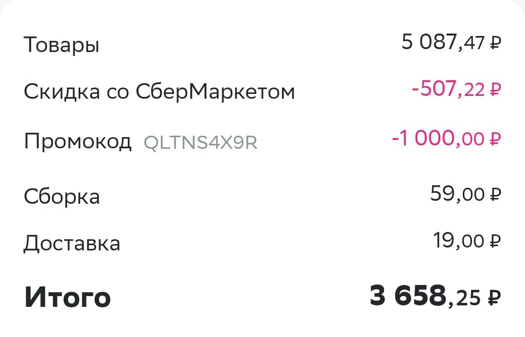 Обычно я пользуюсь доставкой из пятерочки. В основном набираю продукты на 1500 тыс и ввожу промокод * БД1500* , чтобы не оплачивать доставку. Небольшой лайфхак) Стоит залезть в интернет и кругом реклама, куда не глянь, везде она) И мне попалось на глаза нечто интересное: промокод на продукты в 30%. Сначала я подумала, что это какая-то лажа. Начнутся ограничения, на товары, которые и так имеют скидку, как обычно это происходит с Магнитом. И никакие дополнительные промокоды не распространяются... И все в этом духе. Но я решила попробовать. Ну мало ли... Я всегда за то, чтобы сделать и печалиться, чем печалиться о том, что не сделал))) Зарегистрировалась, зашла по сбер айди, ведь в приложении указано, что будут дополнительные сбер спасибо за заказы, это тоже оказалось очень интересным. Ведь не прям куча магазинов, которые готовы списывать баллы "спасибо". А здесь такая хорошая возможность списывать на покупку до 99% баллов "спасибо". Но при первом заказе решила этого не делать, а все же и