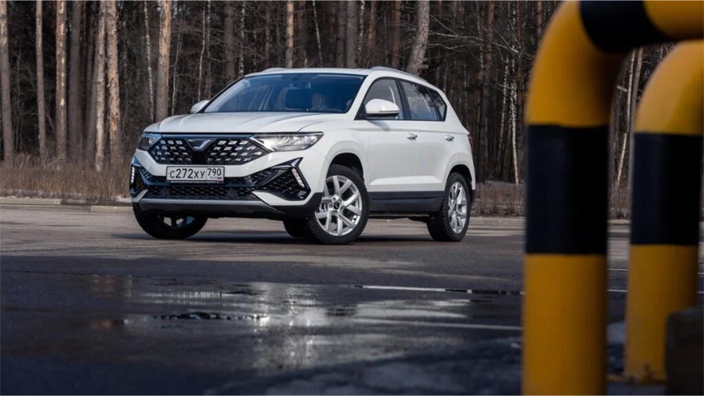 - Формы кузова и задней оптики прямо говорят, что перед нами — вариация на тему VW Taos и Skoda Karoq.