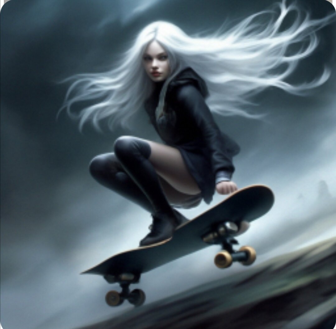- Ну, разворчался, старичок, — усмехнулась девушка, вскочила на скейт и перемахнув ворота, помчалась над дорогой.
