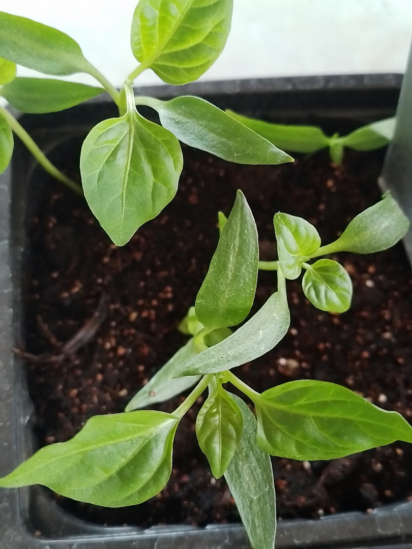 Сладкий перец наращивает листочки. Но не весь, есть такие экземпляры, которые только появились. Острый перец в этом году взошёл как никогда дружно. Баклажаны немного вытянулись, но в целом выглядят неплохо. Помидоры почти все показались. Лишь один сорт немного запоздал, но всё же уже показал петельки. На луком регулярно издевается кошка, посидеть ей видите ли больше негде) Картофель из семян взошёл дружно, надеюсь также дружно будет подрастать. Шток-роза листочки наращивает. Гвоздика подрастает. Виола растёт, колеус один держится пока, гейхера что-то не радует. Астрочки начали листочки выпускать. Здесь у меня тоже астры и флоксы взошли. Это многолетняя астра всходит. Нивяник показался.