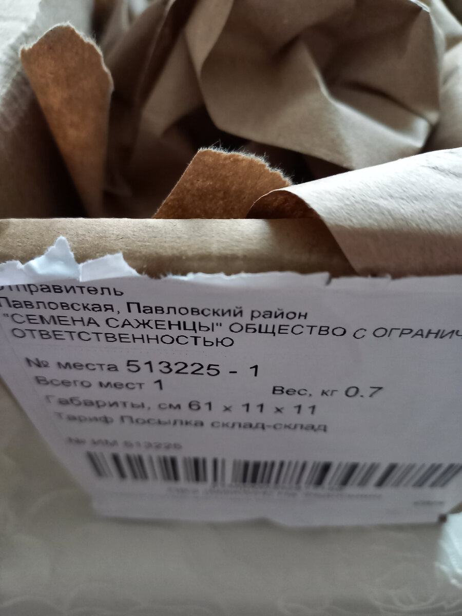 Показываю, что и как пришло. Посылка от Гарден-Класс. Упаковка для пяти саженцев не большая и лёгкая, сразу как получила меня это насторожило. По срокам доставили заказ быстро, в самом начале обговариваемоно срока. Шла посылка пять дней компанией Сдек, быстро. Упаковано хорошо, не болтались в пути и доехали саженцы целыми. Два пиона, один сорт дал росточек и его видно на фото. Второй пион сомнительный, два небольших корешка-палочки и не понятно живы ли. Розы как и видно на фото все с проснувшимися почками. Некоторые даже подсохли. Веточки тоненькие. Может такие они и бывают, эти английские розы? Корневую не раскрывала, всё завернула в бумагу и убрала в холодильник. Там им лежать с неделю, повезу на дачу и там посажу в тех.горшки до тепла. Честно говоря не очень довольна посылкой, это у меня впервые. Буду надеяться, что все саженцы приживуться и не будет пересорта. Стоимость с доставкой обошлась 2020 рублей. Если бы не сорта которые хотелось иметь, за эу сумму можно выбрать непло