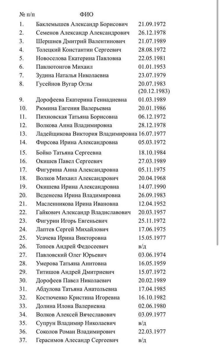 Министерство здравоохранения Подмосковья опубликовал список погибших в концертном зале "Крокус сити холл" — в нем 37 человек.
