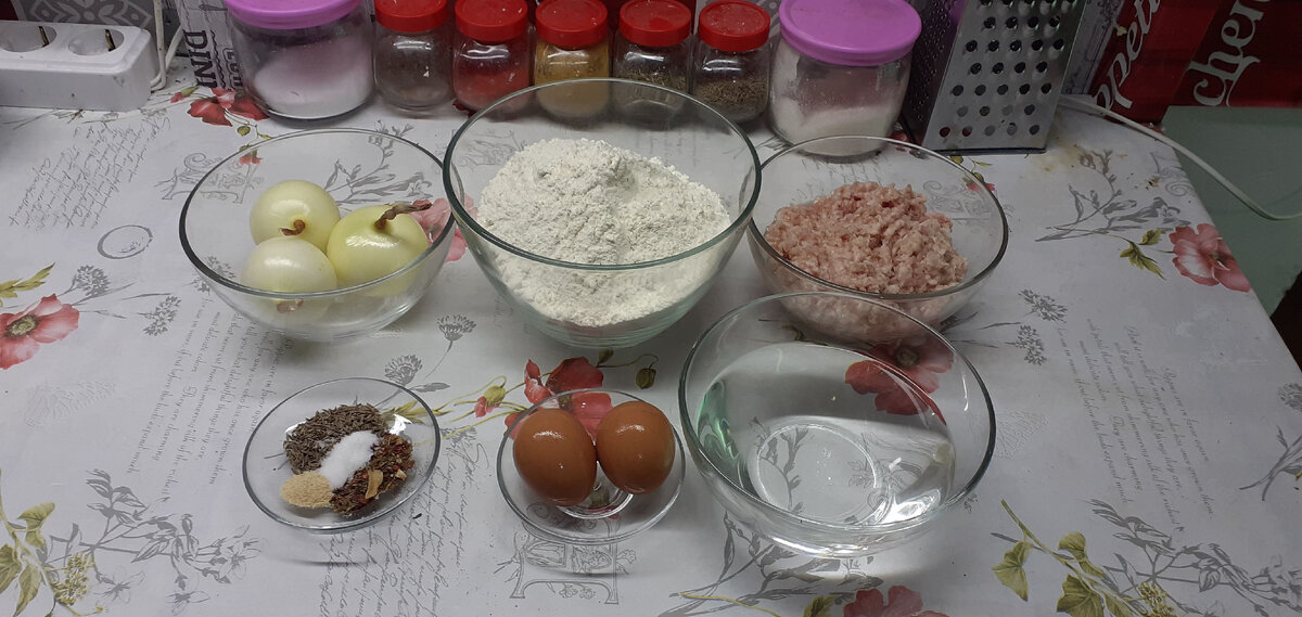 Здравствуйте дорогие друзья !!!! Давайте сегодня приготовим вкусное ,сочное , нежное, ароматное блюдо национальной русской кухни " Пельмени " Итак приступим к приготовлению, что нам для этого понадобиться: 1.Мука - 500 гр 2.Вода - 250 гр 3.Яйца - 2 шт 4.Лук - 3 шт 5.Мясо - 350 гр 6.Соль - 1 ч.л. 7.Масло растительное - 4-5 ст.л. 8.Специи: карри , куркума, паприка, первым и вторым блюдам - 1 тс. л. Приготовление: 1.Для начала нам необходимо в муку ,добавить воду, яйца и соль и замесить не сильно тугое тесто 2.Далее нам необходимо взять фарш, натереть в него лук, добавить соль, специи и все тщательно перемешать и дать постоять 20-30 минут, это нам необходимо для того чтобы мясо пропиталось соками лука и ароматом специй 3.Далее нам необходимо разделить тесто на три части и раскатать их в шарик, также тесту надо отстояться 10-15 минут , это необходимо для того чтобы тесто раскатывалось легче 4.Затем нам необходимо раскатать тесто в тонкий пласт, толщиной 2-3 мм, это нам необходи