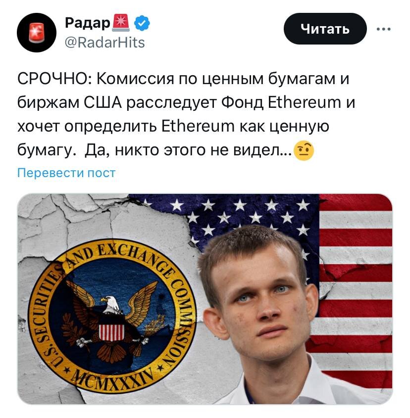 SEC изучает компании на возможные связи с Ethereum Foundation, стремясь классифицировать ETH как ценную бумагу. Главный аругемент SEC это то, что Ethereum перешла с работы POW на POS при этом нескольким из американских компаний было предложено представить финансовые отчеты и документы, связанные с их взаимодействием с Ethereum Foundation. Многие аналитики считают, что расследование SEC о статусе ETH как ценной бумаги служит "дополнительным предлогом для отказа" от спотовых заявок Ethereum ETF. Разумеется, что если SEC собирается одобрять ETF, она будет вдоль и поперек изучать Ethereum, надеемся Виталик от нас ничего не скрывает. B2B-Trade