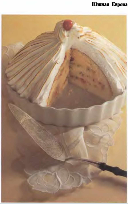Бисквитный пудинг 1 бисквитная основа торта, по 3 рюмки (60 г) зеленого ликера и рома, 200 г глазированных фрук тов, 3 желтка, 6 ст.л. сахара, натертая цедра от 1 лимона, 3 ст.л. муки высшего сорта, 3/8 л моло ка, 2 белка, 5 ст.л. сахара Бисквитную основу торта разрежем на полоски шириной 1/2 см и дли ной около 4 см. Половину полосок сбрызнем ликером, вторую половину — ромом. Глазированные фрукты мелко порежем. Желтки с саха ром и лимонной цедрой в кастрюле взобьем до состояния пены, посте пенно добавляя муку и молоко. На медленном огне и при непрерывном