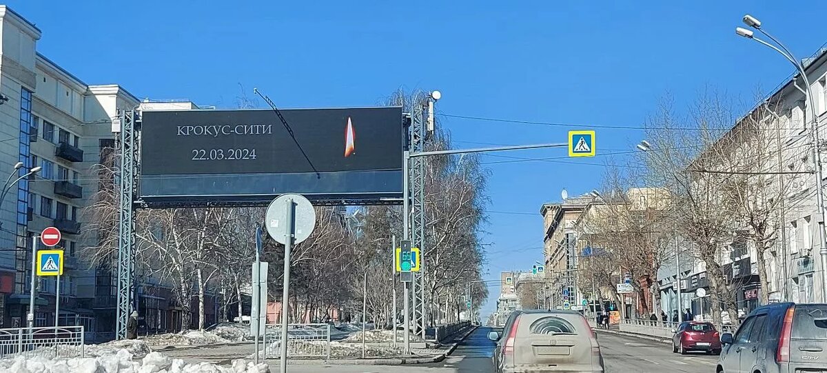 Стихийные мемориалы и билборды памяти погибшим в «Крокус сити холл» появились в Новосибирске