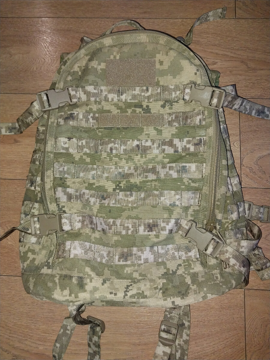 Один вариант рейдового рюкзака мы рассмотрели в предыдущей статье, в этой будет аналогичный по размерам, для тех же целей, но иной по конструкции. Каким должен быть рейдовый рюкзак и для каких целей он нужен? Вода, дополнительный БК, дополнительная медицина, сухпай – основное предназначение рейдового рюкзака. Объем - 25-35 литров. Данный рюкзак, в отличии от обсуждавшегося в предыдущей статье, имеет две лямки и поясной ремень для надежной фиксации рюкзака. Для удобства эксплуатации со стороны спины имеется отдел с мягким вкладышем из вспененного полиэтилена и жесткой фиброй формирующей геометрию рюкзака. Ремни снизу предназначены для крепления коврика, или аналогично упакованного груза. Так же есть удобно расположенные ремни сверху, для чего то не менее нужного, чем коврик. Ремень закреплен так, что груз будет лежать горизонтально на лямках рюкзака. Так же сверху есть ручка для переноски. Боковые лямки для утяжки не наполненного рюкзака. Наружных карманов нет, клапан один на качестве