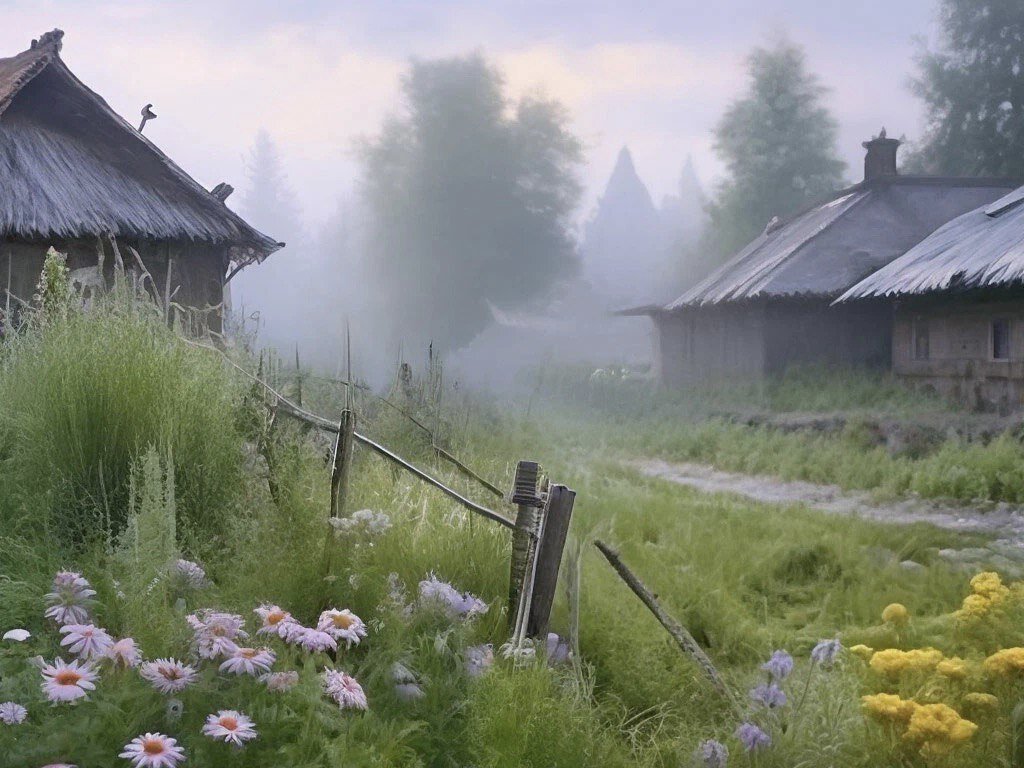 Раннее деревенское утро. Старик, потягиваясь, вышел на крыльцо…осмотрелся. Кое-где еще оставалась роса, в низине перед деревней мягко расстилался туман. Слышно щебетание птиц. Направился осмотреть хозяйство свое. Проверил: у коров хорошо все, стоят здоровые, мычат, точно просятся уже на лужок. Выпустил курочек своих из курятника, пускай свежим воздухом дышат.