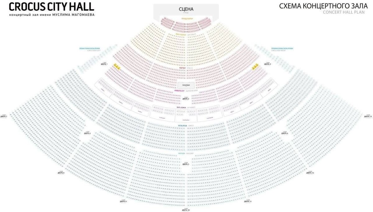 Всего максимальная вместительность зала в «Крокусе» — более 9500 человек.
