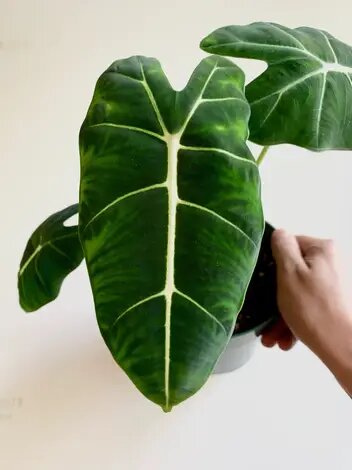 Если вы хотите, чтобы ваша Алоказия Фридек выглядела наилучшим образом, убедитесь, что она находится во влажном месте, так как растение склонно к потемнению кончиков листьев в условиях влажности ниже идеальной. Поддон с галькой прямо под растением поможет снизить влажность окружающей среды.