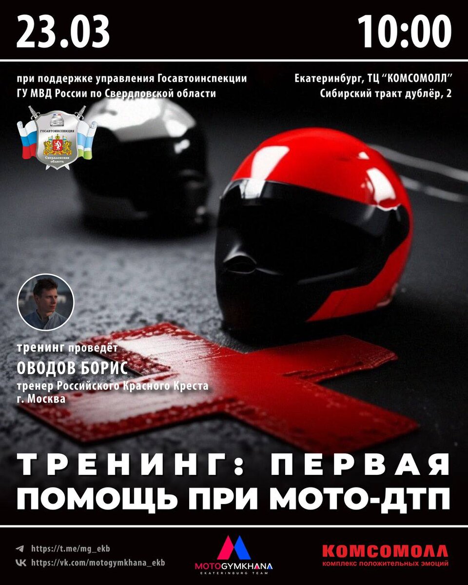 Силами команды Мотоджимхана-Екб (https://t.me/mg_ekb) был организован семинар по оказанию первой помощи для мотоциклистов. Обучение проводил тренер Российского Красного Креста Оводов Борис.