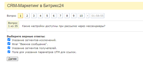 Ответы на тест "CRM-маркетинг в Битрикс24" (некоторые ответы не верные, но тест пройден)
