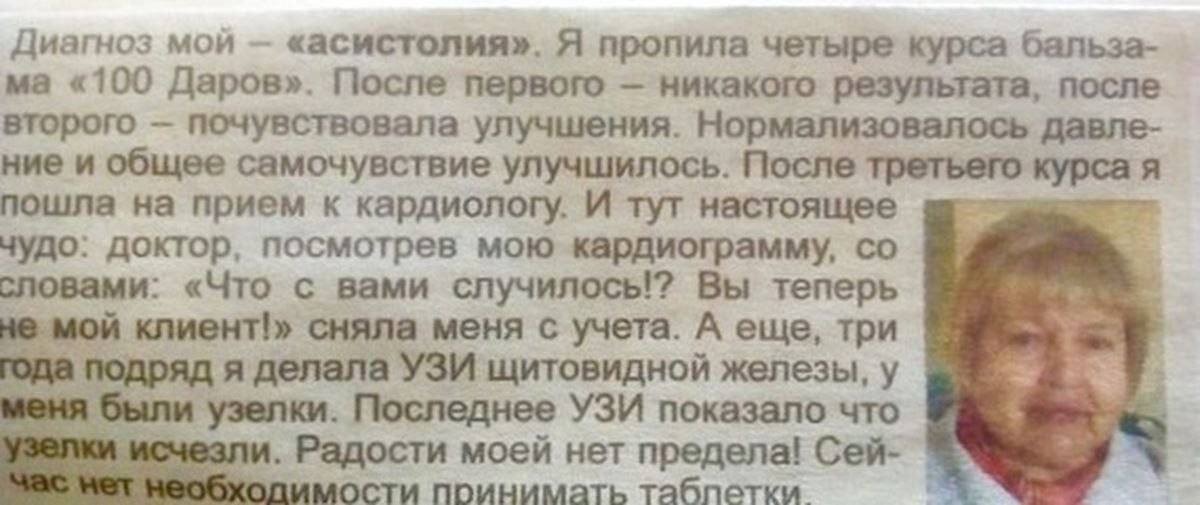 На фото отрывок из газеты, и даже не обладая глубокими познаниями в медицине, можно понять, что не нужно доверять этой статье.