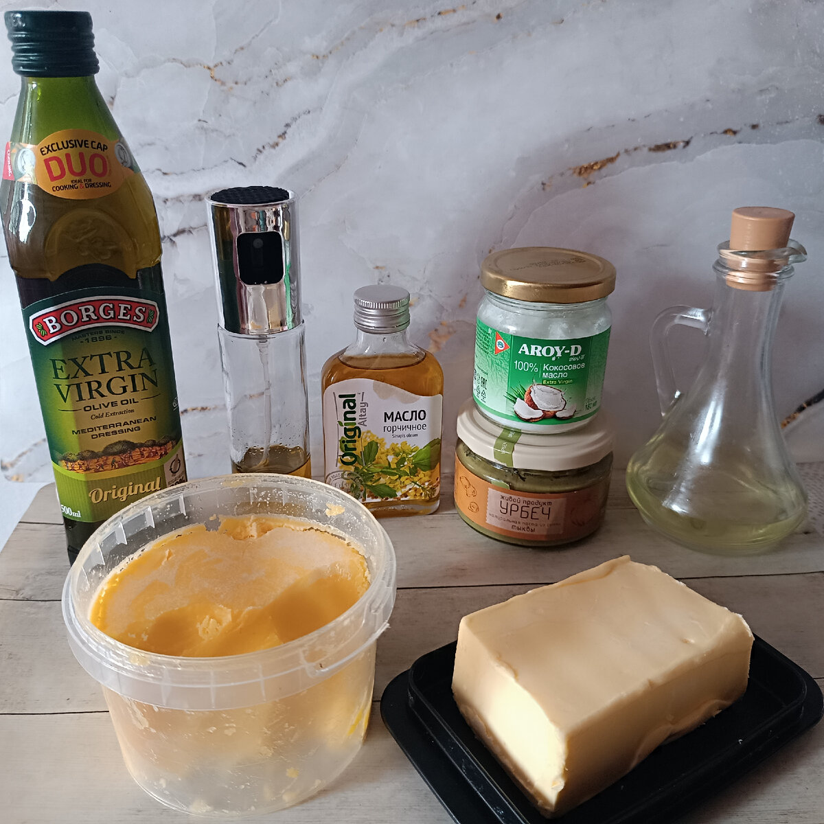 Всем привет! Очередной обзор ) Но длинным он не будет, потому что масла использую немного ) От рафинированного подсолнечного отказалась бесповоротно в 2022 году под влиянием Дарьи Савельевой и её канала. Готовлю на небольшом количестве топлёного, на кончике ложки. Овощи иногда на нерафинированном оливковом. Что я использую: 1. Сливочное 2. Сливочное топлёное Киргизского производства. Я была в Киргизии, там луга и стада и я верю, что там натуральное масло ) Качеством я довольна, нет пахты, лишней жидкости. Имею я и свой опыт приготовления масла Гхи, конечно. Вот оно. 3. Нерафинированное оливковое. Удобно использовать распылитель. 4. Нерафинированное подсолнечное - очень люблю традиционно его использовать в винегрет и квашеную капусту. 5. Горчичное - покупаю и пробую небольшие бутылочки вкусного, ароматного масла. Сейчас горчичное. Было кунжутное - ОЧЕНЬ понравилось. Тыквенное, наоборот, не понравилось. 6. Кокосовое. Тугоплавкое масло, на котором тоже можно готовить. 7. Я включил