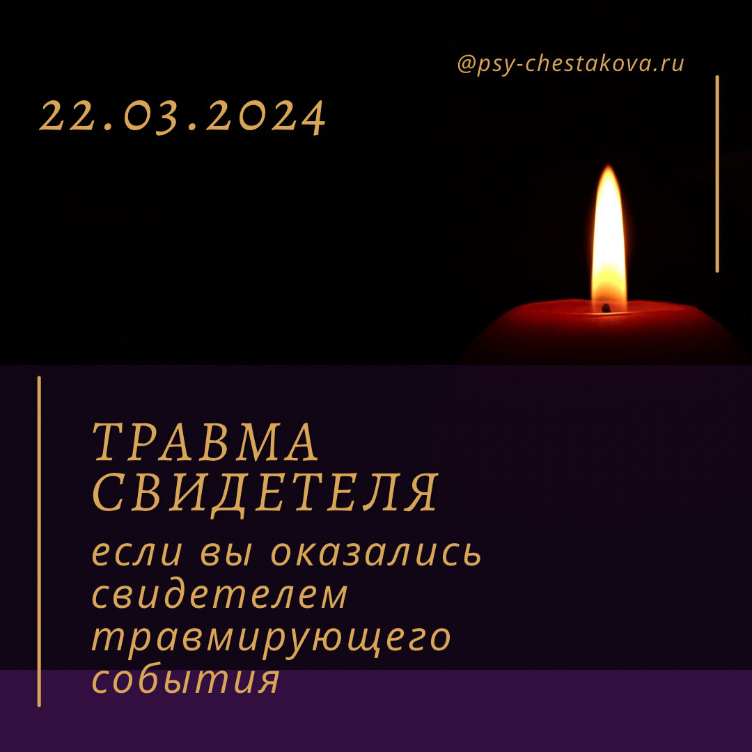 Эта статья написана в связи с ужасающим террористическим актом - хладнокровным расстрелом безоружных людей, в том числе детей, в Крокус Холле 23 марта 2024. Пережитое пострадавшими невозможно осознать. Мои глубочайшие соболезнования родным и близким погибших в этой трагедии. Но информация, которой я здесь делюсь может, к сожалению, пригодиться и в другое время, поэтому очень прошу вас внимательно дочитать до конца. Горькая правда заключается в том, что помимо прямых пострадавших, всегда есть огромное число людей, которые переносят травму свидетеля. И это не только близкие люди тех, кто напрямую был участником ужасных событий, которые вызывают сильный стресс и эмоциональное потрясение, например, насилие, авария, террористический акт или природная катастрофа. Это и те люди, которые видели страшные кадры, читали сообщения в информационных новостных каналах. То есть огромная часть населения может быть затронута травмой свидетеля. Причины возникновения травмы свидетеля могут быть разли