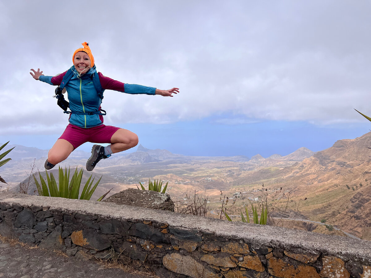 Позавтракав, уже в 09:30 мы находились в автомобиле у Адилсона и направлялись к Serra Malagueta - национальному парку острова Сантьяго. Наш маршрут пролегал в сторону Bajeta Neves (1602 м), через Pinu и Maria Curra, к панораме Chä de Feiguera. К 11:00 мы достигли места назначения, оплатили вход в парк, приобрели карту и начали наше путешествие. Во время прогулки нам попадались местные жители, несущие на головах дрова и сено. Было странно и хотелось узнать, почему они собирают это прямо в Национальном парке. И снова перед нами открылись потрясающие виды на горы, долины и океан с высоты птичьего полета. Внезапно мы оказались среди облаков, сначала подумали, что это туман, но нет, это были проходившие около нас облака. Это было конечно прикольно, но также огорчило нас из-за ограниченной видимости в радиусе 2-3 метров. Но как по волшебству, облака рассеялись, представ перед нами чарующую панораму, тянущуюся на множество километров. Мы провели там около полутора часов, полностью погружаяс
