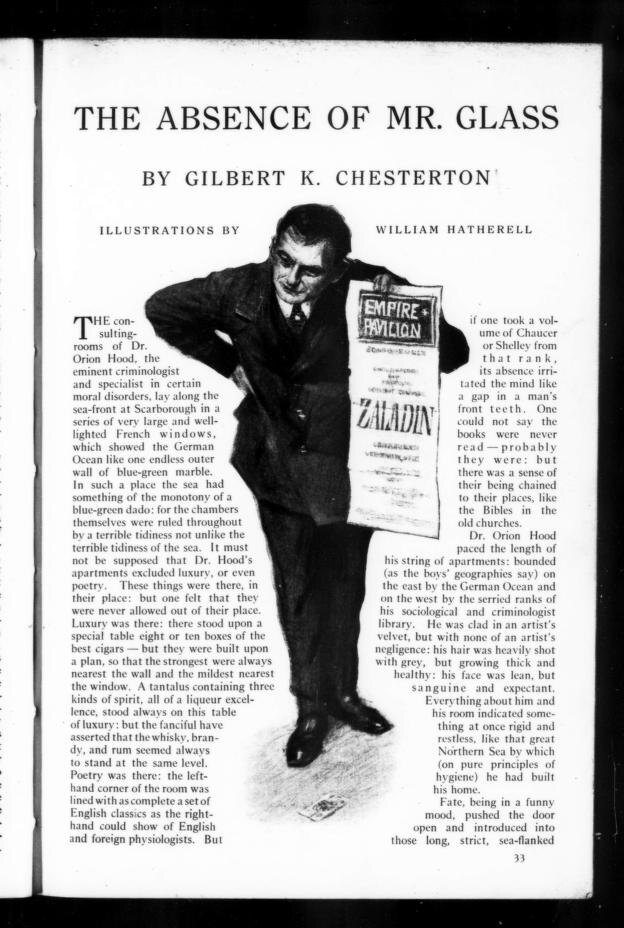 И тут меня озарило! Изначально Честертон печатал свои рассказы в периодических изданиях – сначала в газете, чуть более поздние работы – в журналах, и найти точные даты с номерами легко. В журналах работали и Хаттерелл с Салливаном. Если где-то есть сканы...