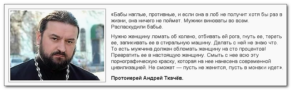 Да этот батюшка Андрей Ткачев женоненавистник!