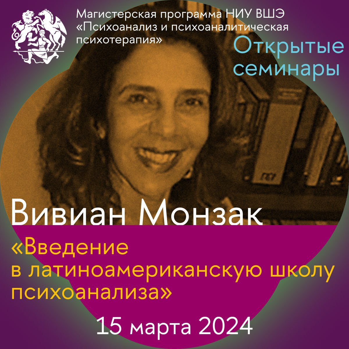 15 марта 2024 г. Вивиан Мóнзак. «Введение в латиноамериканскую школу психоанализа»