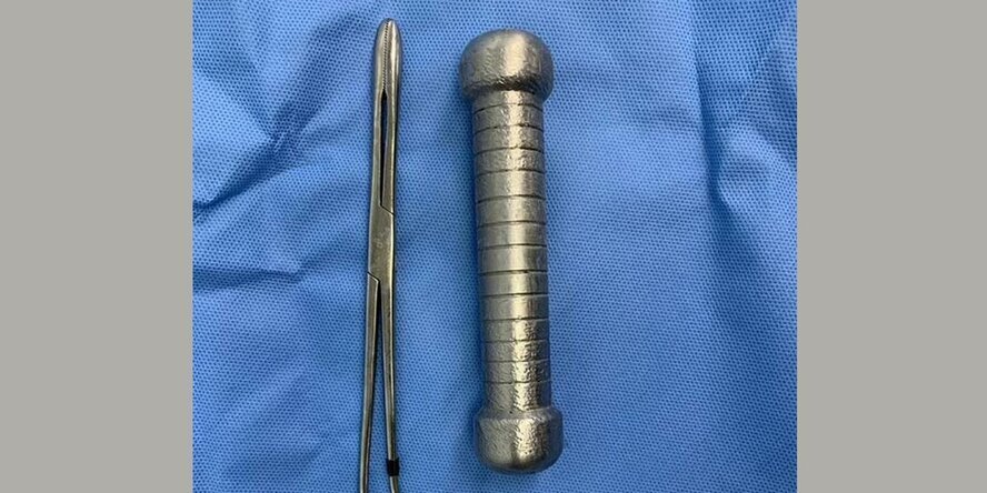 Врачам пришлось руками доставать из мужчины 2-килограммовую гантель, застрявшую в его заднице Бразильские врачи столкнулись с необычным пациентом. 54-летний мужчина затолкал в себя 20-сантиметровую гантель весом 2 килограмма, но не смог вытащить ее обратно, сообщает Daily Mail Бразилец двое суток проходил с гантелей в прямой кишке до того, как наконец решил обратиться за медицинской помощью. Мужчина не смог самостоятельно извлечь металлическую гантель, так что отправился в госпиталь в городе Манаус. Он пожаловался на недомогание и боль в животе. Кроме того, несчастный не мог справить нужду из-за застрявшего спортивного снаряда. После того как в ходе обследования не была обнаружена причина возникшей проблемы, мужчине назначили рентген. В результате выяснилось, что у него застряла гантель в месте, где толстая кишка смыкается с прямой. Врачи полагают, что мужчина пытался получить таким образом сексуальное удовлетворение. Медики не смогли достать из зада пациента спортивный снаряд с помощ