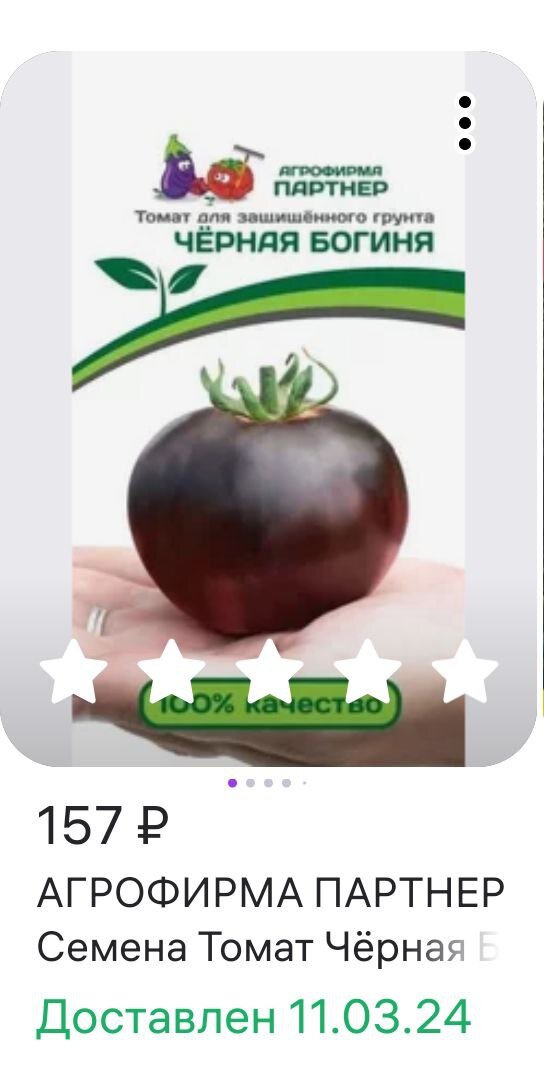 На этом моя душа не успокоилась. На Вайлдберриз я заказала семена томатов от компании Партнер Черная Богиня.