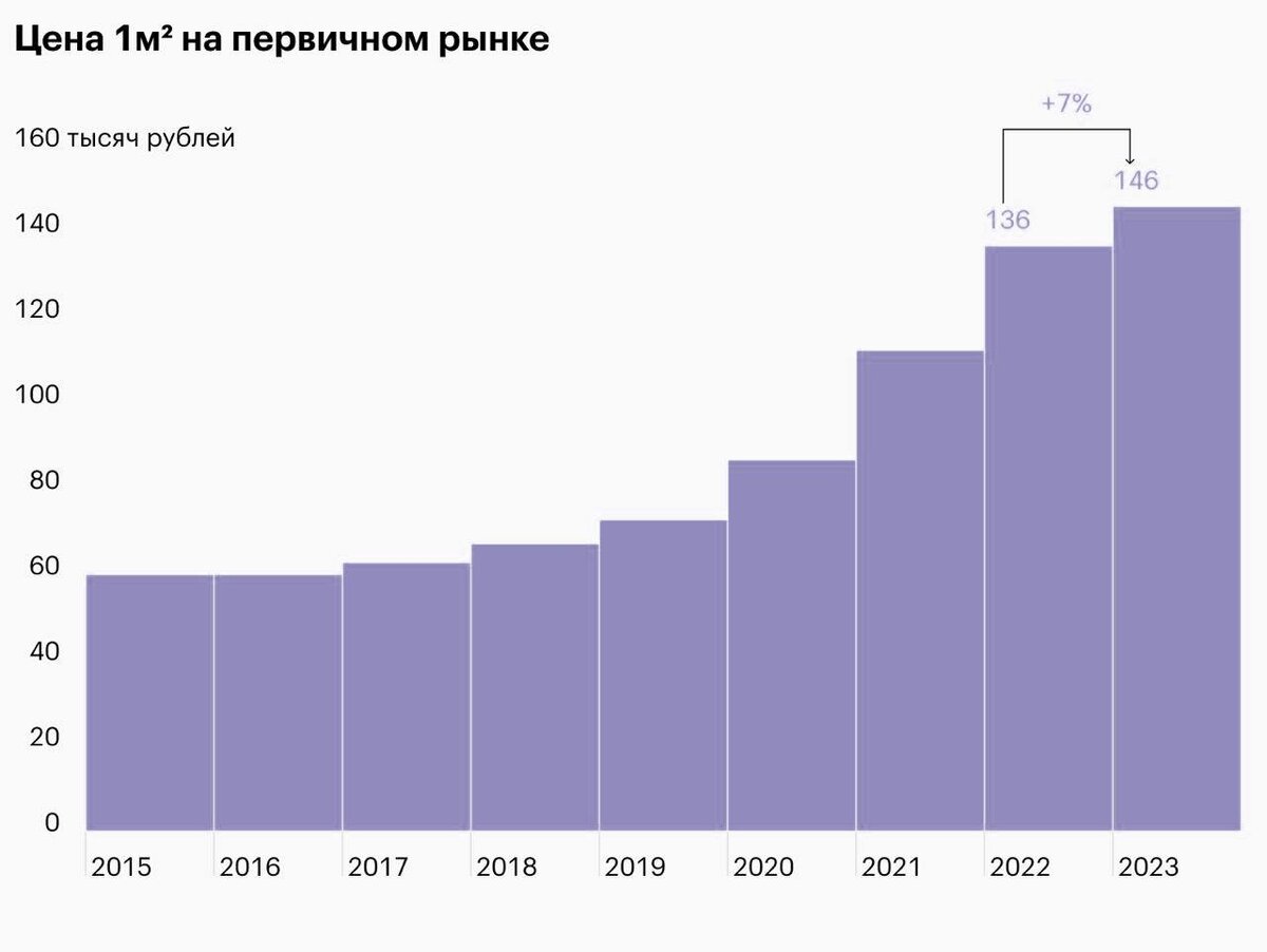 Факт: на протяжении последних лет цены на новостройки растут. Иногда умеренно, а иногда — небывалыми темпами. Взяли открытую статистику Росстата: 📈 В 2020 году цена за м² в Петербурге выросла больше чем на 26%, в 2021 — уже на целых 32% 📈 В 2023 стоимость жилья увеличивалась более адекватными темпами — на 7.4% ❓Квартир слишком много, поэтому застройщики начнут снижать цены Какой здесь может быть аргумент? В 2023 году было продано 3.6 млн м², что намного больше, чем в 2022 году. При этом и выводилось на рынок больше: 3.7 млн м² в 2023 против 3.3 млн м² в 2022 Наш совет для потенциальных покупателей — принимать решение! Наши специалисты проведут бесплатный аудит подходящих вам вариантов покупки