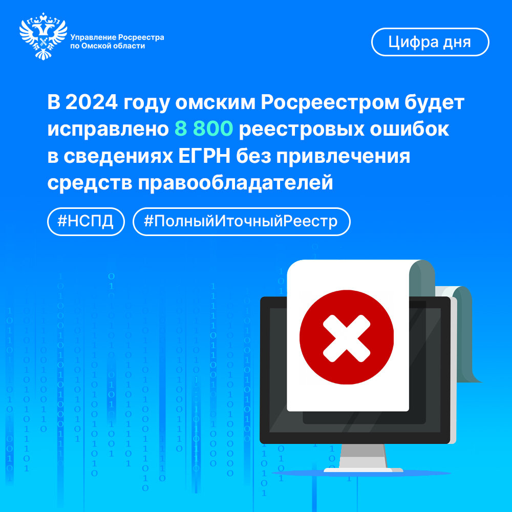 В 2024 году омским Росреестром будет исправлено 8800 реестровых ошибок в сведениях ЕГРН без привлечения средств правообладателей