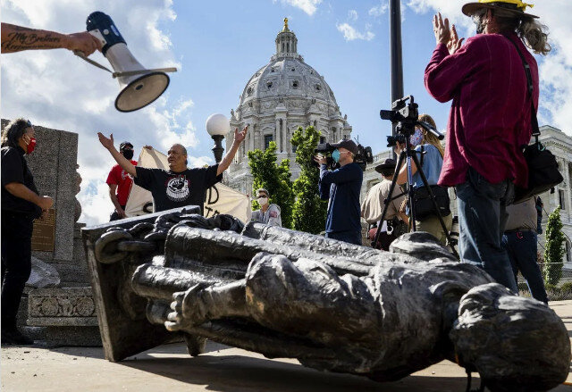 Мы смеёмся над убогой глупостью американцев, которые вдруг взялись сносить простоявшие полторы сотни лет памятники своим историческим деятелям. Потому, что спустя столько времени там у них нынешнее поколение вдруг открыло для себя, что у исторической персоны были, понимаешь, рабы! Страшное дело! К тому же она, эта историческая персона, оказывается, цисгендерная и белая. А это уж вообще никак. Значит - надо сносить, куда денешься? Мы возмущены тем, что творят по отношению к памятникам величайшему русскому поэту Александру Сергеевичу Пушкину в некоторых местах, тоже называющих себя «цивилизованной страной». Чем им мешает памятник, который до вас добрые люди поставили, испытывая благодарность к великому человеку за его чувственное мастерство, вклад в мировую литературу? Ах да, Пушкин, хоть и не такой «белый», как американские конфедераты, но тоже цисгендерный, имел крепостных, но всё это фигня по сравнению с тем, что он считал себя русским! Конечно, обязательно надо поизмываться и снести.