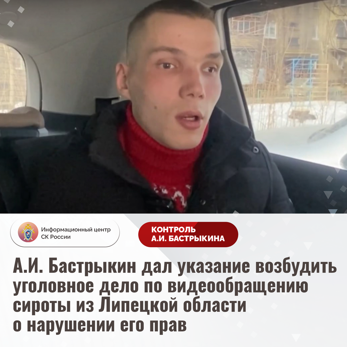 А.И. Бастрыкин дал указание возбудить уголовное дело по видеообращению сироты из Липецкой области о нарушении его прав