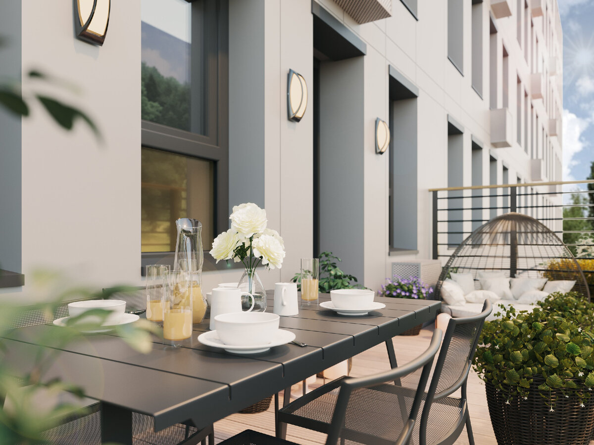 В «Проспекте Мира» они есть не только в двухуровневых квартирах, но и в обычных. На 1-м, 7-м и 20-м этажах. Хотя «обычной» квартиру с террасой в любом случае назвать сложно. Ведь она как будто задает совершенно новый формат жизни в городе. Только представьте, вы живете на первом этаже многоквартирного дома, но у вас есть своя приватная территория, которую летом можно превратить в мини-палисадник и каждое утро завтракать на свежем воздухе. Кажется, дни, которые будут начинаться так непременно станут более счастливыми. Зимой на террасе можно поставить елку, повесить гирлянды и наслаждаться этой красотой по вечерам, не переживая за то, что кот свалит игрушки.
