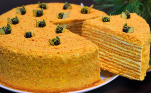 Медовик – ароматный тортик родом из нашего детства. Пышные коржи, сочный крем и красивое украшение делают десерт главным на любом застолье. Рекомендуем приготовить медовик с заварным кремом, чтобы сделать приятный сюрприз своим гостям и домочадцам. Используя в качестве начинки заварной крем, вы сможете получить невероятные впечатления от торта. Он делает медовик более нежным и утонченным по вкусу. Такой десерт придется по душе и детям, и взрослым, а также настоящим гурманам-сладкоежкам. Энергетическая ценность блюда Белки 6 г Жиры 11 г Углеводы 35 г Калорийность блюда – 269 ккал Время приготовления – 1 день Количество порций – 8 Ингредиенты (на коржи): · 2 яйца; · 100 г сливочного масла; · 1 г соли; · 160 г сахара; · 400 г муки; · 1 ч.л. соды; · 50 г меда. Ингредиенты (на крем): · 800 мл молока; · 5 яиц; · 120 г сливочного масла; · 250 г сахара; · 140 г муки; · 1 г ванилина. Приготовление: 1. В антипригарной кастрюле растопить на плите масло, снять и добавить к нему мед. 2. В миске пер